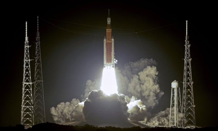 Two hurricanes, two months and a number of technical fixes since previous launch attempts were thwarted, and Nasa’s Artemis 1, the most powerful space rocket in history, is finally on course for the moon after lifting off from Florida early on Wednesday. The spacecraft, comprising the mighty Space Launch System (SLS) rocket and pioneering Orion capsule, lit the night sky as it rose from its Cape Canaveral launchpad at 1.47am ET. The 25-day, 1.3m-mile journey to the moon and back is Nasa’s first crew-capable deep-space mission for half a century.